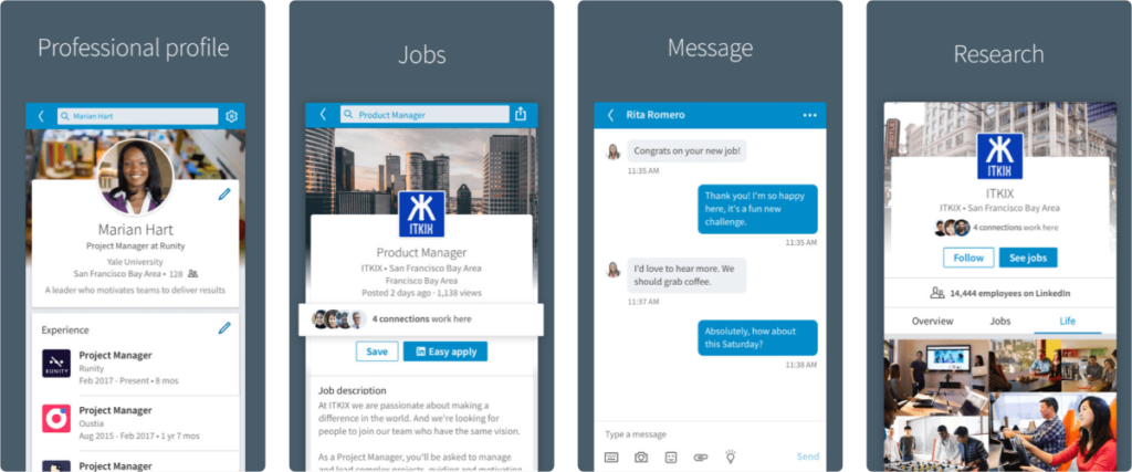 LinkedIn loves to synch your data. Since it is owned by Microsoft you can sync it with Microsoft Office in order to create elaborate CVs. You can also connect it to Twitter so you can share updates on both networks at the same time and contact employers by clicking on the dedicated LinkedIn button from their website.