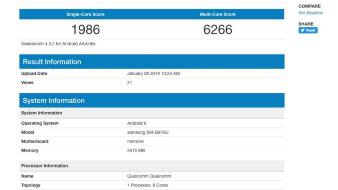 Based on the listing from the popular benchmarking database, Samsung Galaxy S10 Lite (listed as SM-G970U) will have a Qualcomm-made processor, with a frequency of 1.78 GHz. The device has a motherboard codenamed “msmnile” and it will come with 6GB of RAM. Also, it looks like the smartphone will come with Android Pie out of the box. According to this, the phone is not going to be a mid-range device, as it was believed until now.